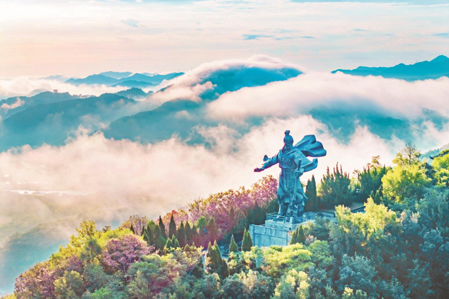 清晨,繚繞云霧與璀璨朝霞映照到紹興會稽山上的大禹銅像,華夏人文與自然景觀相互交融之美油然而生。(朱華芬)?!?/a>