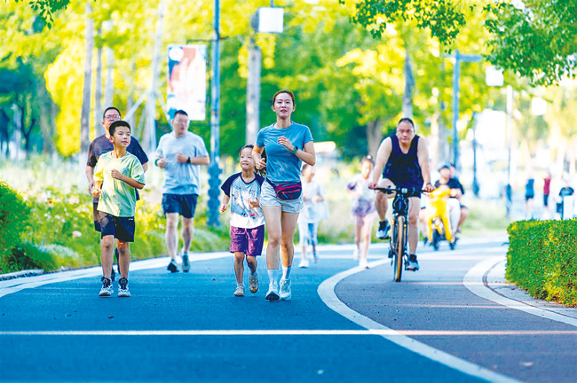 9月7日早晨,金華市區湖海塘濕地公園綠道上,市民在晨練。當日是二十四節氣中的白露?!?/a>