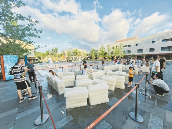 隨著7月20日入伏,紹興進入一年中最熱、最難熬的時節。為了減少酷熱給消費者帶來的影響,紹興一開放式商業街區這些天在室外區域放置大型冰塊,并在景觀樹上用水管噴灑水霧,以多種方式防暑降溫?!?/a>