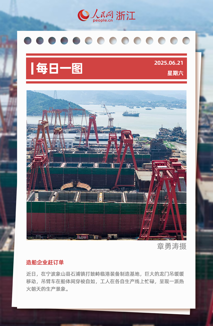 人民網寧波6月19日電 (孫鵬)近日,在浙江省寧波市象山縣石浦鎮打鼓峙臨港裝備制造基地,巨大的龍門吊緩緩移動,吊臂車在船體間穿梭自如,工人在各自生產線上忙碌,呈現一派熱火朝天的生產景象。 據寧波海事局統計數據,今年以來,寧波新造船已交付22艘,約65萬載重噸,產值約20.02億元,同比增長21.8%?!?/a>