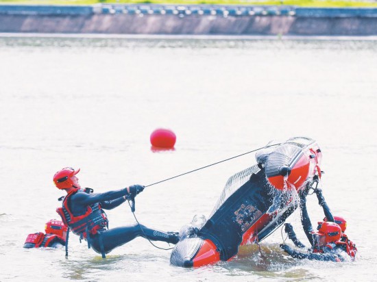 近日,紹興市消防救援支隊在嵊州市開展水域救援技術培訓和防汛防臺聯合演練,以更好提升水域救援實戰能力,應對汛期可能出現的災害險情。圖為演練現場?!?/a>