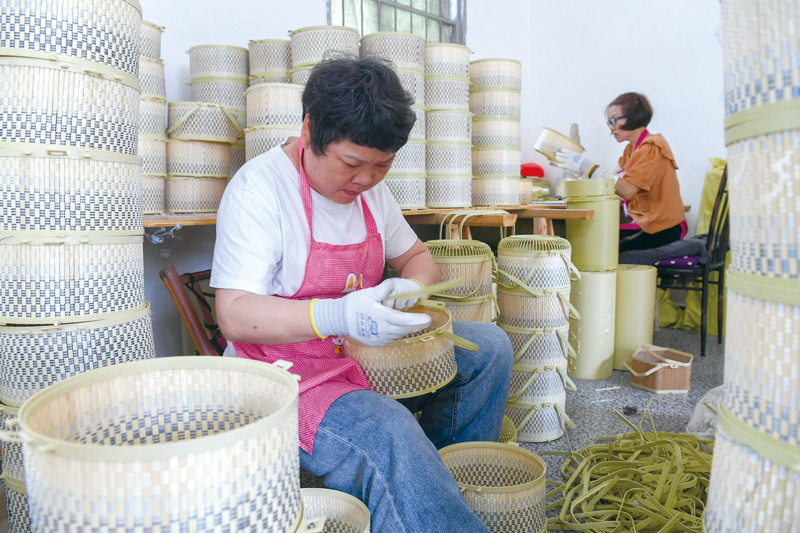 眼下,正逢楊梅上市。5月21日,金華蘭溪市馬澗鎮石渠村,村民正在廠房內加工各種款式的楊梅籃?!?/a>