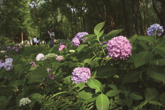 5月24日下午,嘉興市南湖景區南溪園,繡球花競相綻放,紫色、粉色、淡藍色……怒放的花朵在綠意盎然的枝葉間搖曳生姿,構成了一幅絢麗多彩的初夏畫卷,吸引了眾多市民和游客前來觀賞打卡。(徐志達)?!?/a>
