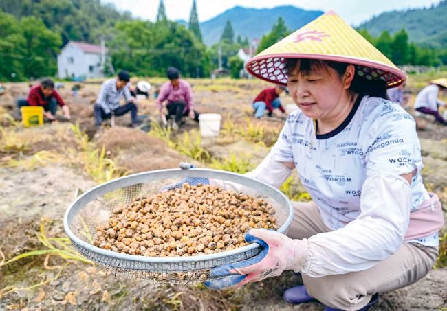 近日,在金華市婺城區沙畈鄉和美村的糧經輪作種植基地里,村民們頭戴遮陽帽,手持小鋤頭,小心翼翼地在泥土里上下翻動,一顆顆個頭小巧玲瓏、顏色微微泛黃的元胡破土而出。 據悉,小小中藥材,不僅是治病救人的良藥,更是促進當地村民增收致富的良方?!?/a>