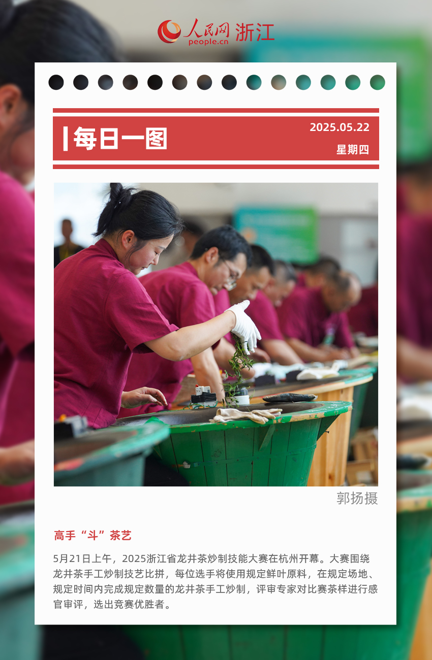 人民網杭州5月21日電 (記者郭揚)今天上午,2025浙江省龍井茶炒制技能大賽在杭州開幕。 今年大賽圍繞龍井茶手工炒制技藝比拼,設新銳、巔峰兩組,每位選手將使用規定鮮葉原料,在規定場地、規定時間內完成規定數量的龍井茶手工炒制,評審專家對比賽茶樣進行感官審評,選出競賽優勝者,分別授予參賽選手“浙江省龍井茶制茶大師”“浙江省龍井茶制茶新秀”“2025浙江省龍井茶炒制能手”“2025浙江省龍井茶青年炒制能手”稱號?!?/a>