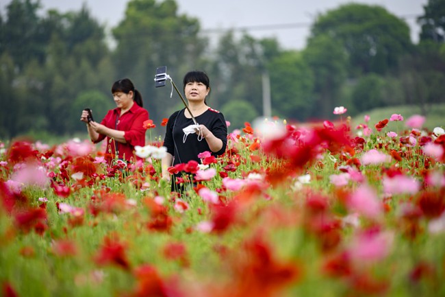 據了解,這個“五一”,荻浦花海將免門票開放。這座改造一新,集“花卉觀光、休閑度假、親子家庭、主題活動”為一體的綜合性鄉村自然樂園將帶給游客不一樣的體驗,而且在景區里大多游客都是用手機向親朋好友“云直播”花海的美麗風光.(何小華、陳東暉攝)