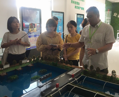 沈國根向記者介紹循環生態養殖系統。王麗瑋攝