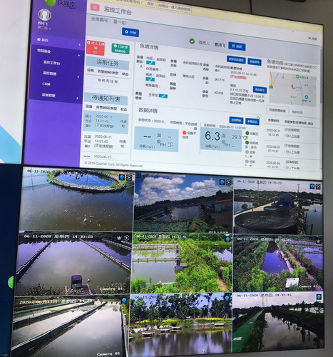 不僅如此,借力物聯網技術,當地養殖戶還實現“手機上養魚”。在慶漁堂24小時物聯網實時監控系統上記者看到,聯網魚塘實時情況清晰可見,點點鼠標,就可以實現增氧喂料。