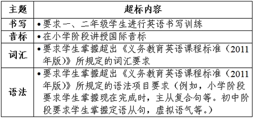 1.培訓不得超出現行義務教育英語課程標準規定的各學段分級標準,禁止將初中知識類的教學內容提前至小學教學與測評,禁止將現行普通高中英語課程標準規定的知識類教學內容提前至初中教學與測評。