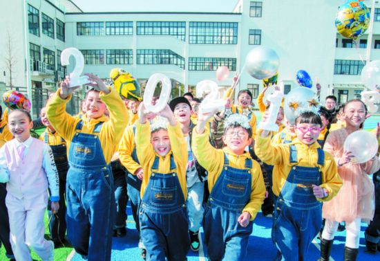 12月31日,金華市區湖海塘小學操場上,一群學生手舉“2021”字樣,歡快地奔向前方。據悉,湖海塘小學舉行迎新嘉年華活動,以跑操、動畫夢工廠、合唱、搭橋展等形式多樣的活動喜迎2021年。
