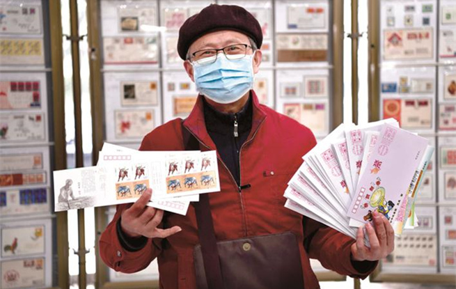 牛年即將來臨,中國郵政昨天(1月5日)發行《辛丑年》郵票。在嘉興市區中環北路的集郵專賣店,集郵愛好者們一大早就來購買,F場還開展了提供加蓋牛年彩色郵資機宣傳戳的活動,此枚生肖紀念戳是全市首枚彩色郵資機宣傳戳。
