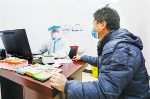 1月12日下午,紹興越城區人民醫院發熱門診的醫生在近日建成的發熱門診獨立診室對病人進行診治。