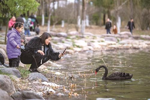 1月31日上午,臺州臨海靈湖景區飛來3只黑天鵝。它們從容覓食、戲水,吸引了不少市民。黑天鵝是國家二級保護動物,常年棲息于海岸、海灣、湖泊等水域,遷移模式沒規律,主要取決于優質的水環境和氣候條件。 近年來,靈湖水質常年保持在Ⅱ類標準。2020年,創成省級美麗河湖,為魚類和野生動物繁衍生息創造了良好的生存環境,白鷺、灰鷺、野鴛鴦等多種鳥類都在靈湖繁衍生息或棲息越冬。
