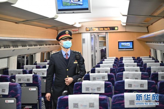 2月10日,唐忠洪在D657次列車上巡視車廂。