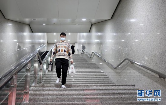 2月11日,重慶北站的通道內,提著年夜飯的余科龍走向妻子任鵲應值班的站臺。