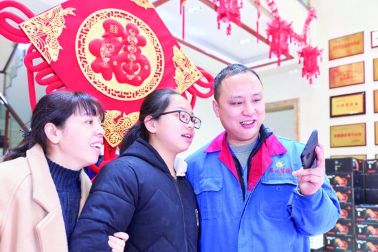 2月10日上午,在金華市景迪醫療用品有限公司生產車間,100多名留金過年的外地員工依然堅守在工作崗位上。中午休息時間,河南員工張帥一家人和千里之外的親人進行視頻親情連線,向親人遙送新春祝福。公司負責人陸濤介紹,企業200多名外地員工積極響應政府號召留金過年。為此,公司特地安排了夫妻房,在大年三十將地方20多種特色菜搬上餐桌,請留金過年外地員工一起吃團圓飯,在第二故鄉喜迎新春佳節。(胡肖飛、黃澤振)