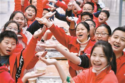 昨天(2月26日)中午,寧波鄞州區邱隘實驗小學擺起30多米長的桌子,讓4個年級中的近200名學生學包湯圓,讓學生們通過親手實踐,感受我們的節日·元宵與寧波獨特民俗的魅力。(嚴龍、陳燕)