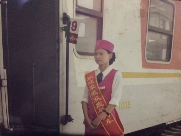 1998年,初入職的胡斯楊在“雙鹿”號金溫列車上擔任乘務員。照片由受訪者提供