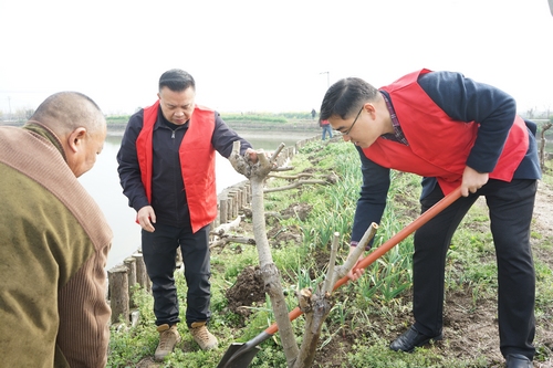 3月10日上午,湖州南潯和孚鎮人大代表們開展義務植桑護;顒。