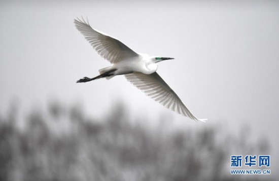 白鷺在南昌市象山森林公園上空飛翔(3月10日攝)。(萬象)