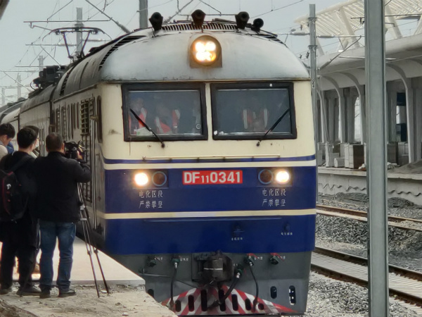 3月18日12:30,金臺鐵路首趟動態檢測列車從臺州站金臺場駛出。章子豪攝