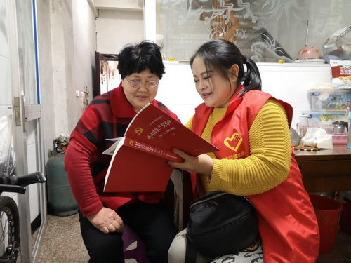 3月16日,大峃鎮黨員志愿者前往退休干部家中為退休干部朗讀黨史。陳斌攝