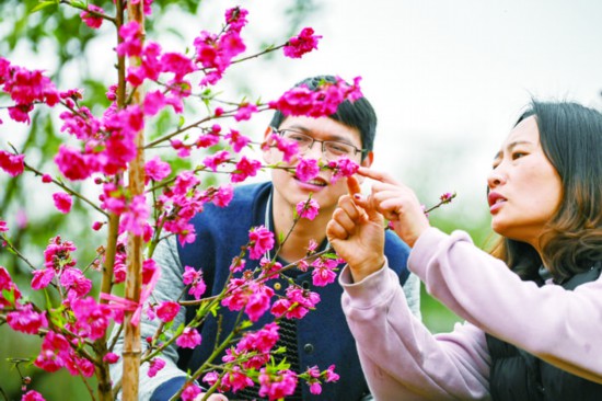 3月19日,金華國家農業科技園區桃子資源圃里,市農科院工作人員正在觀察和記錄桃花的物候期。為促進農旅融合發展,依托金華市人民政府·中國農科院院地合作平臺,市農科院從中國農科院鄭州果樹所引進觀賞桃品種20余個,在國家農業科技園區進行試種。目前通過嫁接,已在源東鄉桃基地推廣桃花新品種3000多株,明年桃花花期預計延長兩個多月。(胡肖飛)