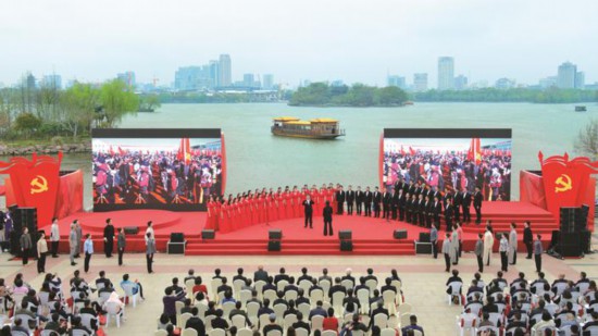 3月27日下午,“因為信仰”從南湖出發——浙江省優秀原創歌曲演唱會全省巡演啟動儀式暨“紅船頌 南湖情”原創歌詞歌曲首發式音樂會在嘉興市南湖畔舉行;顒蝇F場以一場“音樂會”重磅奏響“悠悠赤誠心”,重現中國革命紅船從南湖揚帆起航的歷史性時刻,唱響愛黨愛國主旋律,全面展示紅船起航地的首善精彩。