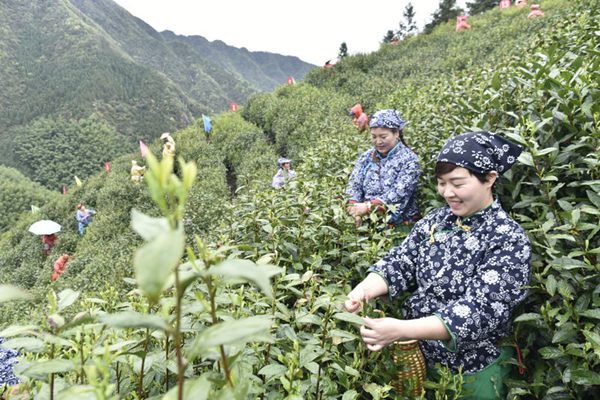 采茶季,箬陽鄉各地茶園里滿是采茶人。吳潮宏攝
