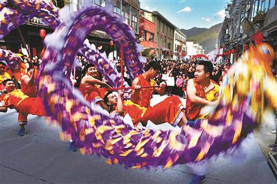 布龍慶豐收。奉化區委宣傳部供圖