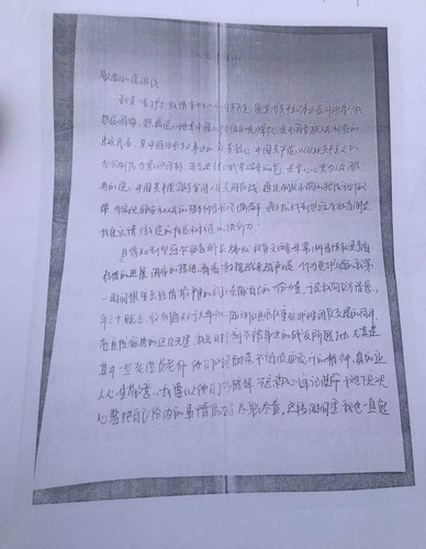 鄭秀娟的入黨申請書(復印件)。人民網 王麗瑋攝