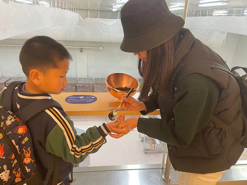 小學生正在參觀巧克力小鎮,品嘗手工巧克力。人民網 王蕭蕭攝