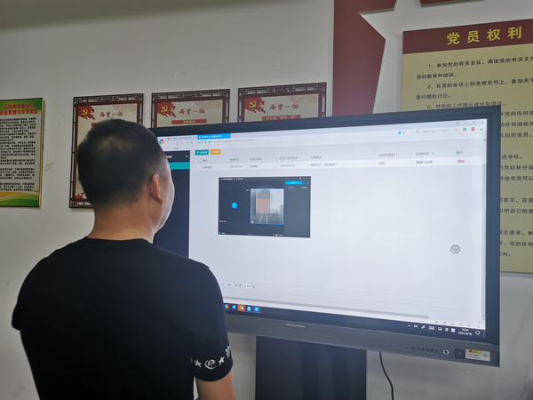 仙降街道翁垟村村民林先生正在通過三級視頻連線平臺,與飛云法庭工作人員“面對面”實時溝通立案相關事項。張麗勇攝