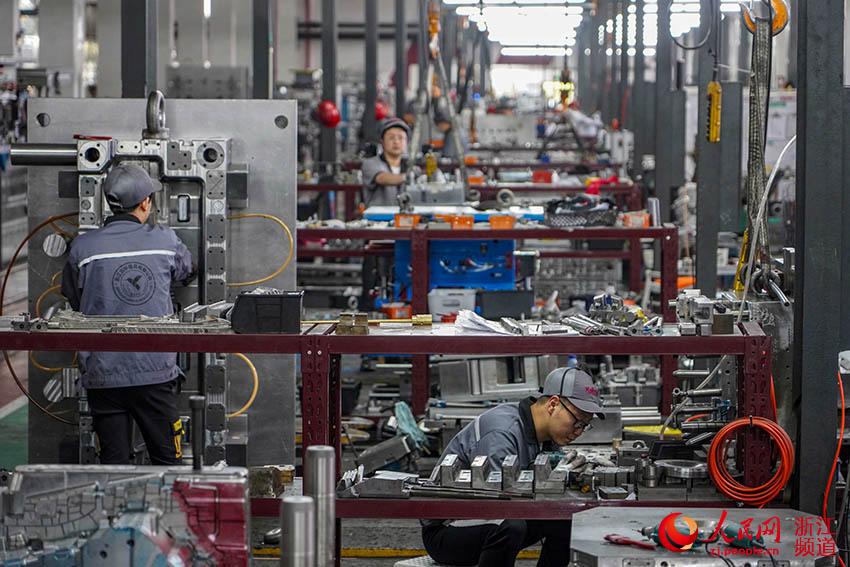 臺州黃巖浙江凱華模具有限公司車間里,工人在加工模具。人民網 章勇濤攝