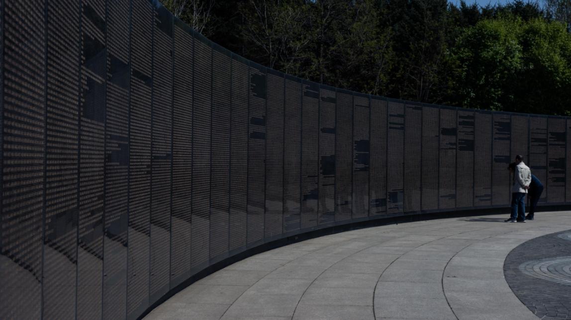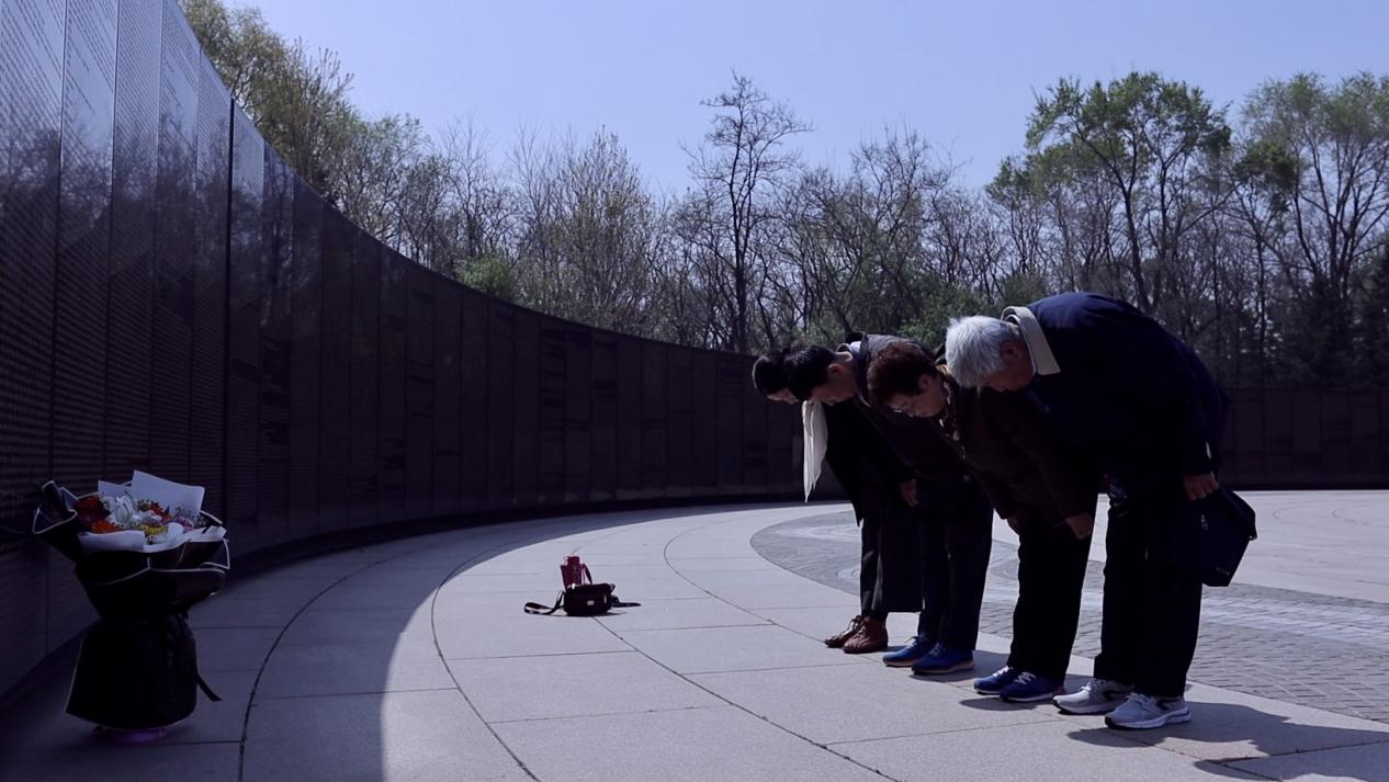 金伍星夫妻和金云星夫妻在英名墻下悼念。人民網 邱宇哲攝