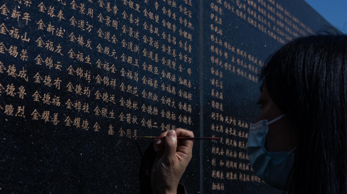 4月19日,沈陽抗美援朝烈士陵園的烈士英名墻上,工作人員鄭重地刻上了第174449個名字——金用善。