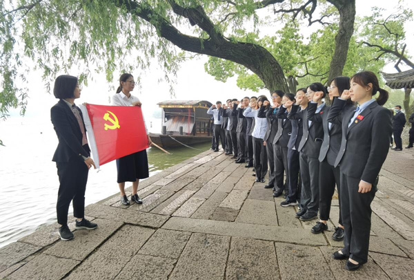 在嘉興南湖,農行嘉興分行青年主題活動高潮迭起。連日來,80、90后青年員工們瞻仰紅船,重溫入黨誓詞,在“紅船精神”引領下,更加堅定了愛黨、愛國之心,以“青春之我”崗位建功,將“紅船精神”代代相傳。在嘉興市檔案館里,他們參觀了“建黨百年初心如磐——長三角紅色檔案珍品展”,并紛紛表示,要傳承老一輩的革命精神,在不懈奮斗中綻放絢麗之花。