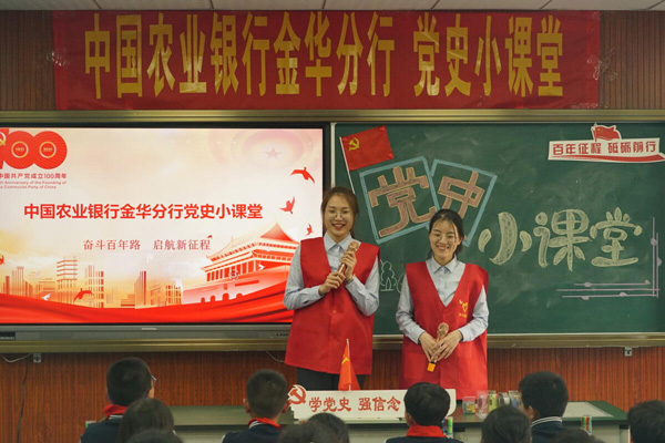 在金華市白龍橋第二小學的教室里,一片童聲稚語,由農行青年擔任的“小老師”們受到了孩子們的熱烈歡迎!八阅阏J識陳望道了嗎?”“你知道艾青的哪些作品?”當一個個課后問題拋出時,認真聽講的孩子們紛紛舉手、踴躍互動,你一言我一語,從兒童的視角又一次將紅色故事生動演繹。原來,是農行金華分行青年志愿者們將“黨史小課堂”,搬到了該行設立的“農行關愛兒童之家”里,通過重溫黨的歷史,為留守兒童們帶去溫暖。