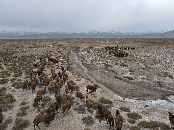 昆侖山下的青海省海西蒙古族藏族自治州烏蘭縣,牧民們帶著7000多峰駱駝生活在這里。