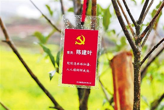 新入黨的黨員種下入黨紀念樹,掛上初心牌。劉斌攝
