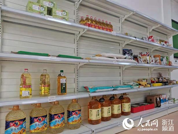 北山街道糧食銀行是西湖區開設的第二家糧食銀行。100多平方米的店面內,擺放著一排排整齊的貨架,貨架上面放滿了大米、食用油、飲料、方便面等食品。所有的食品包裝袋上,不僅貼著“西湖糧食銀行”的標簽,還注明了生產日期和保質期。