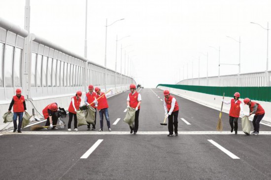 嘉興市區快速路環線通車在即,5月18日,嘉通集團啟動“黨員在身邊,打造美窗口”志愿服務主題實踐活動,10支志愿服務隊、100名黨員志愿者參加啟動儀式,并在快速路上進行保潔志愿服務,為打造干凈整潔美麗的城市窗口奉獻力量。(王振宇)
