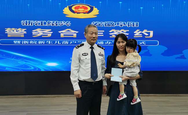 人民網紹興5月19日電 (張麗瑋)新生兒落戶也能“跨省通辦”了!今天下午,浙江紹興、安徽阜陽警務合作簽約暨浙皖新生兒落戶“跨省通辦”首發儀式在紹興舉行;顒蝇F場,長三角區域首本新生兒落戶“跨省通辦”的居民戶口簿正式發放。