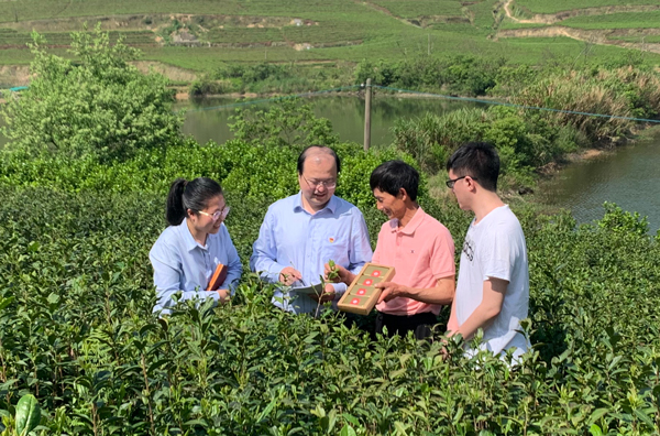 農行白峰支行工作人員向顧師傅了解茶葉產銷情況。郭星雲攝