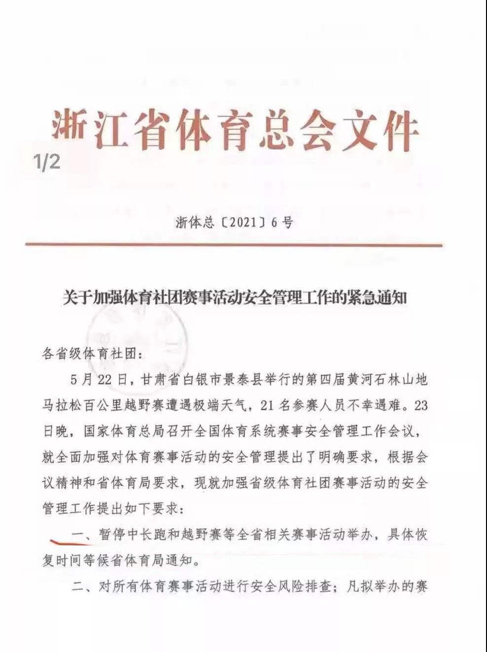 • 浙江緊急暫停中長跑和越野賽有關賽事活動舉辦