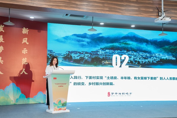 從振興發展“一枝獨秀”的盆景,到“先富幫后富”帶動“周邊一起富”的魅力風景,杭州淳安下姜村黨總支書記姜麗娟介紹了下姜村的“致富經”。