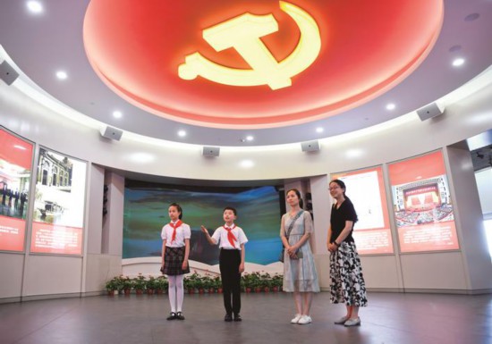 昨天(5月29日),在嘉興南湖革命紀念館,“紅船小講解”在為游客講解黨史。