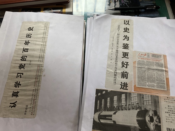 在每天收到的各份報紙上,章思滾會將最新政策內容裁剪下來,用于自己學習及備課。人民網 張帆攝