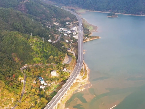 據浙江中冶勘測設計有限公司副總經理、高級工程師張瑞芳介紹,該工程堅持“生態第一、安全第一”的設計理念,并把這一理念貫穿到設計、施工的各個階段和部分,通過強化公路安全設計,完善庫區路段路面水、橋面水、隧道清洗水和突發事故污水處理方案,把不良影響降到最低。