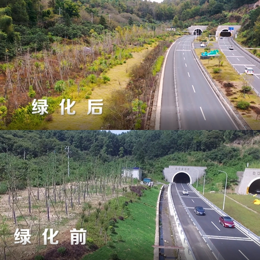 公路綠化前后對比。浙江中冶勘測設計有限公司供圖